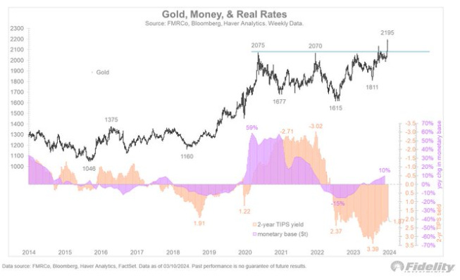 El inversor educado ve lo que está pasando aquí realmente. No se cree que el banco central esté reduciendo la cantidad de dinero en circulación porque si ese fuera el caso, tendríamos recesión. Y no podríamos estar más lejos, particularmente en EEUU. No, el inversor educado escucha a la Fed decir que va a seguir con tipos altos más tiempo y que va a seguir destruyendo liquidez y no se lo cree. No solo no se lo cree, sino que avisa a los demás inversores educados de que aquí hay gato encerrado. Avisa con gráficos, claro.